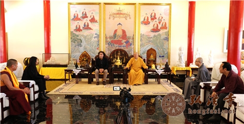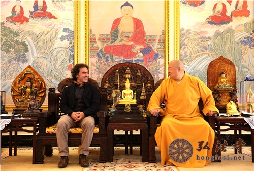 弘法网深圳讯:2016年11月15日上午中国佛教协会副会长、海南省佛教协会会长、深圳弘法寺方丈印顺大和尚在深圳弘法寺会见联合国教科文组织和平大使阿姆里•阿明诺夫一行。