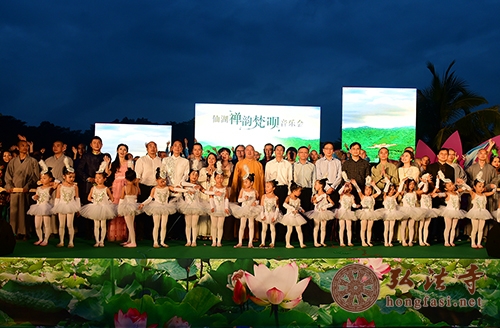 本次音乐会以禅韵为主题,以梵呗唱诵、歌舞表演、民族乐器演奏为演出形式,演员汇聚了深圳市文艺界一流演出阵容、深圳弘法寺僧人以及国内知名音乐家助阵演出。 “一花一世界,一叶一菩提”,禅修因植物而静心,植物因佛教而庄严。草木繁茂印证着佛教的万物欢喜,晨钟暮鼓增添了仙湖的静谧安详,二十四年来弘法寺在这里开放成长,成为民众的心灵家园。值此深圳市第十一届公园文化周之机,深圳弘法寺根据自身丛林特色和优势资源,和仙湖植物园联袂推出佛教梵呗音乐会,以普及佛教修心文化和植物科学知识,展示佛教文化与植物文化融合的魅力,共同打造了一场震撼身心的梵禅音乐盛会,为广大市民游客呈现一场佛教音乐盛宴,在仙湖的湖光山色中感受佛乐禅理之美。传统与现代的完美结合,使音乐与佛法相得益彰,曲曲佛乐,感动着、震撼着广大民众的心灵。