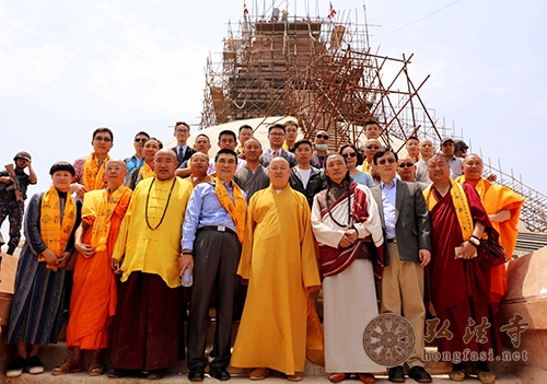 中国佛教协会代表团一行视察博达纳大佛塔重建工作合影