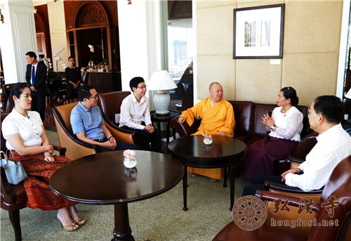 弘法网金边讯:当地时间1月13日上午10点,柬埔寨王国副首相棉森婉在首都金边与中国佛教协会副会长、海南省佛教协会会长、深圳弘法寺方丈印顺大和尚在下榻酒店进行了会谈。