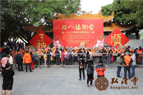 2018年1月24日,农历十二月初八,恭逢本师释迦牟尼佛成道吉日,也是中国传统节日腊八节,弘法寺举办了腊八福粥会。受中国佛教协会副会长、深圳弘法寺方丈印顺大和尚委托,由弘法寺监院智法法师领众,在弘法寺山门广场以数万份腊八福粥施与大众广结善缘,以此因缘,祈愿天下和顺,国泰民安,希望大家消灾延寿,福慧增长,在新的一年里幸福、快乐、健康、吉祥。