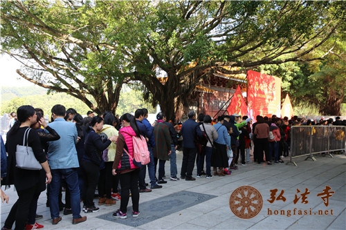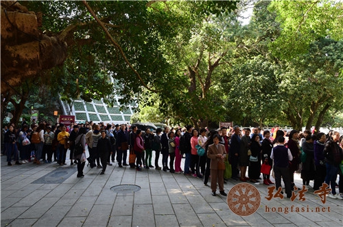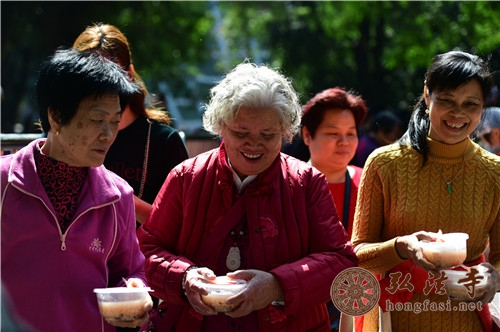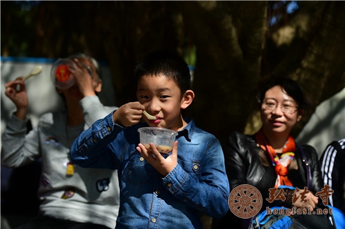 是日上午7时许,天朗气清,现场开始派发腊八福粥。通往弘法寺的路上,善男信女络绎不绝,前往腊八福粥会现场,结缘到了弘法寺为大家精心准备的腊八福粥,满心如愿,笑逐颜开。由于群众过于热情,中午时分,腊八福粥一度供不应求,为保证每一个人都能吃到这一年一度的腊八福粥,弘法寺斋堂继续加班加点熬粥,普施数万份腊八福粥,以满足信众的需求。