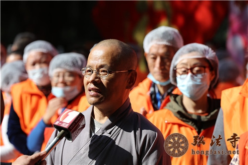 据智法法师介绍,腊八节也是中国佛教徒的重要节日,《敕修百丈清规》记载,腊月八日,恭遇本师释迦牟尼佛成道日,率比丘众,严备香、花、灯、烛、茶、果、珍馐,以伸供养。弘法寺继承传统,定期举办腊八福粥会,自2009年至今,弘法寺的腊八福粥会已经举办了十届,与大众广结善缘,为继承发扬佛陀的精神发挥了重要的作用。