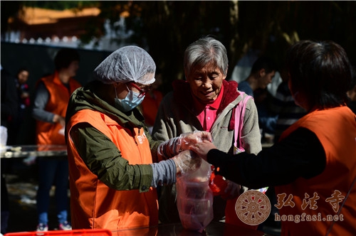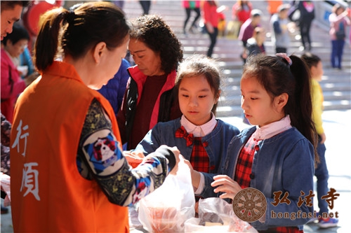 弘法网深圳讯:2018年1月24日,农历十二月初八,恭逢本师释迦牟尼佛成道吉日,也是中国传统节日腊八节,弘法寺举办了腊八福粥会。受中国佛教协会副会长、深圳弘法寺方丈印顺大和尚委托,由弘法寺监院智法法师领众,在弘法寺山门广场以数万份腊八福粥施与大众广结善缘,以此因缘,祈愿天下和顺,国泰民安,希望大家消灾延寿,福慧增长,在新的一年里幸福、快乐、健康、吉祥。