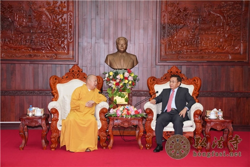 当地时间12月24日,应老挝人民民主共和国政府及宗教界邀请,对老挝进行友好访问的中国佛教协会副会长,深圳弘法寺方丈印顺大和尚与老挝佛教及政府负责人会谈。