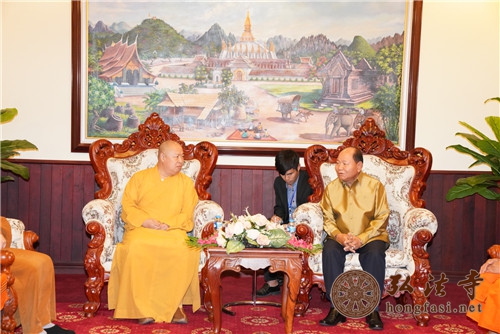 会谈中,印顺大和尚表示:作为近邻,中老山水相连,两国在历史上有着传统的友谊关系。由两国老一辈领导人共同缔造并精心培育的中老友谊,已经成为两国人民的宝贵财富。去年11月,中国国家领导人在访问老挝之际,更是在当地媒体发表题为《携手打造中老具有战略意义的命运共同体》的署名文章,对中老双边关系进行了精辟论述,指出双方要打造“互尊互信”、“互帮互助”、“互惠互利”、“互学互鉴”的命运共同体,为中老关系的未来发展指明了方向。