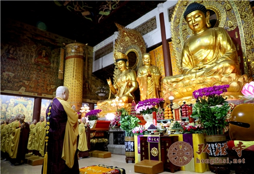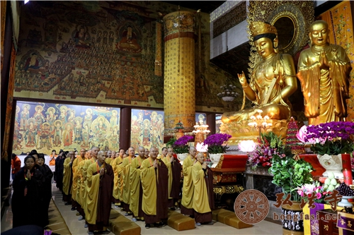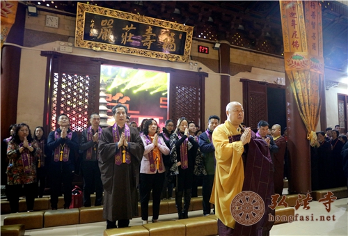晚上11时,印顺大和尚带领十方善信在大雄宝殿拈香礼佛,以佛教特有的方式迎接新年的到来,为新年祈福。