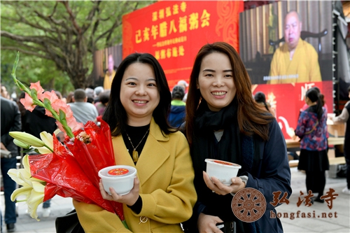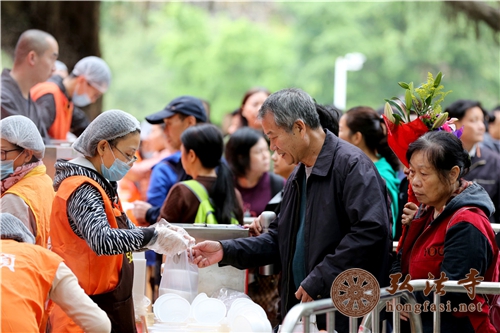 在这个喜庆的日子里,印顺大和尚也亲临施粥现场,向大家致以节日的问候。印顺大和尚表示,过了腊八就是年,腊八是把我们每一年对春节的期待、春天的期望与来年的祝福都慢慢的凝聚在一起,让我们每个人细品这碗腊八佛粥,回味过去一年,祝福未来一年。腊八粥寄托着大家对一切美好的祝福,对大家一切美好的祝愿,我希望大家喝了今天的腊八粥以后,都可以身心如意,开心自在,欢欢喜喜,开开心心的迎接新的一年,也让腊八粥温暖自己的身心,温暖自己的未来,使身心在腊八粥的祝福下都能自在欢喜、无忧无虑的每一天。