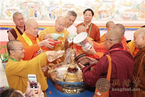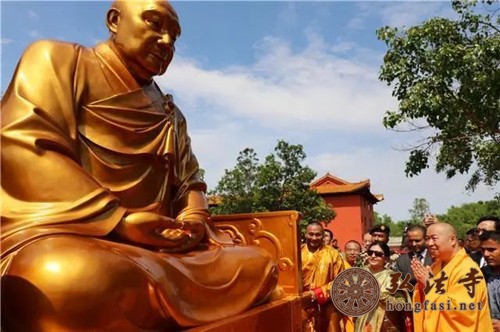 ● 2016年5月,“佛陀诞辰2560周年庆典暨世界佛教大会”活动期间,40多国代表来到蓝毗尼中华寺,为本焕长老铜像揭幕。