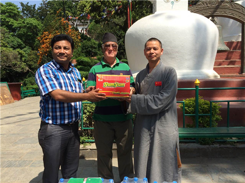 2015年5月2日,受中国佛教协会副会长、深圳弘法寺方丈、尼泊尔中华寺方丈印顺大和尚的委托,深圳弘法寺和尼泊尔中华寺赈灾救援队前往了Sindhupalchowk灾区、加德满都大佛塔、斯瓦扬布地区寺庙和猴庙等四个灾区受灾区,为受灾的灾民送去了急需物资。为了能让灾民尽快领取到救援物品,深圳弘法寺和尼泊尔中华寺救援队分成了三队,直奔四个灾区。