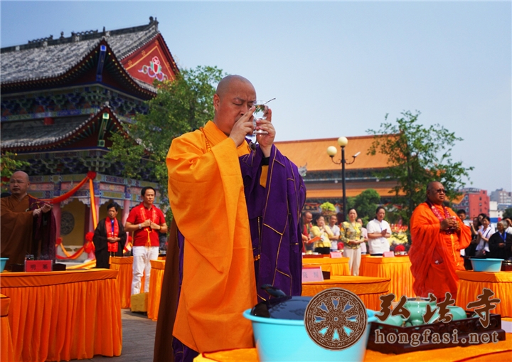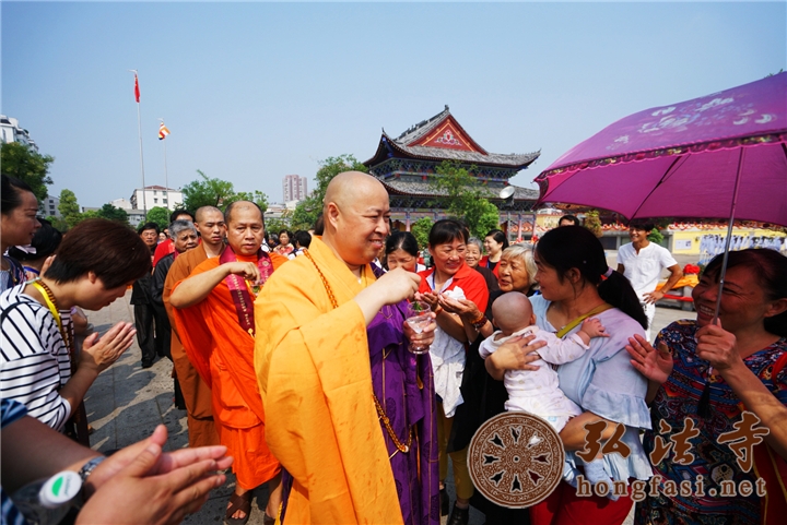 印顺大和尚为前来寺内参加开光典礼的信众洒净