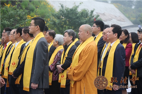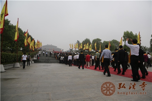 弘法网讯:2014年5月24日,农历甲午年四月二十六,备受瞩目的甲午年世界华人炎帝故里寻根节开幕式暨拜祖大典在湖北随州隆重举行,来自海内外近万名炎黄子孙汇聚烈山,拜谒中华民族的人文始祖炎帝神农,缅怀圣祖功德,共同祈愿国泰民安、人民幸福。中国佛教协会副会长、海南省佛教协会会长、湖北省佛协名誉会长、随州大洪山大慈恩寺及深圳弘法寺方丈印顺大和尚亦出席了此次大典。
