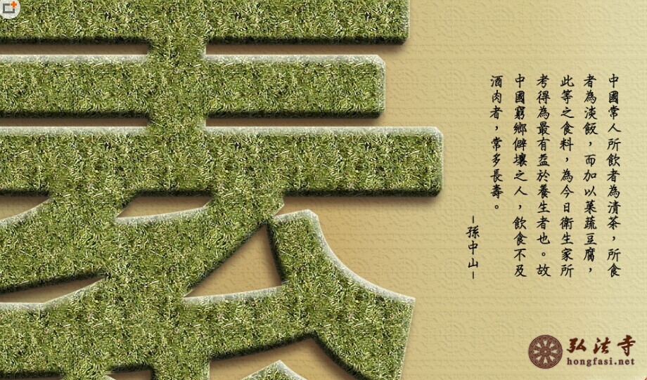 49. 中国常人所饮者为清茶,所食者为淡饭,而加以菜蔬豆腐,此等之食料,为今日卫生家所考得为最有益於养生者也。故中国穷乡僻壤之人,饮食不及酒肉者,常多长寿。—— 国父孙中山
