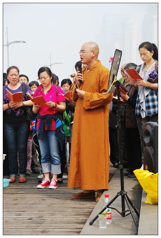 2013年5月11日,早上9点,阳光明媚,在浦东杨家渡渡口举行了5月的放生活动。阳光热烈,来放生的善信们也热情似火,大约有300名大菩萨参加此次放生。本次放生法会,在本源师父的引领下,...
