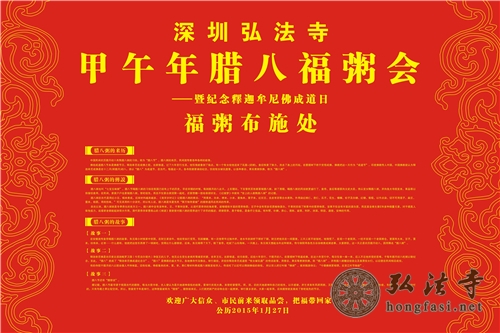 弘法寺定于腊月初八(2015年1月27日)举行第七届腊八福粥会,欢迎广大信众、市民前来领取品尝,带福回家!