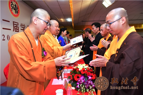 中国佛教协会副会长、本焕学院院长印顺大和尚为毕业生作《不忘初心,行愿无尽》的主旨演讲,送给毕业生三句祝福:一是“士不可以不弘毅,任重而道远”;二是“不忘初心,行愿无尽”;三是“悟已往之不谏,知来者之可追。实迷途其未远,觉今是而昨非”。大和尚特别强调,几天前的7月1日,在中国共产党成立95周年的庆祝大会上,习近平总书记提出,面向未来,面对挑战,不忘初心,继续前进。总书记这几句话言简意赅,却切中要害,醍醐灌顶。古往今来,有太多的失败都是因为忘本,都是因为半路迷失,从而不能面向未来,不能面对挑战,不能继续前进。今天,我们正身处一个伟大的时代,一个活力四射的时代,一个孕育无限希望的时代,同时也是一个沧海横流、大浪淘沙的时代。什么叫续佛慧命?什么叫荷担如来家业?在佛教的世界,你们便是一瓢江水,你们便是一片云天,有你们在的地方,就有佛教,就有佛法的庄严,就有佛陀的慈悲和智慧。