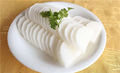 白萝卜中含有大量淀粉酶物质,能够帮助机体分解食物中的淀粉、脂肪,使机体能够更好地吸收。