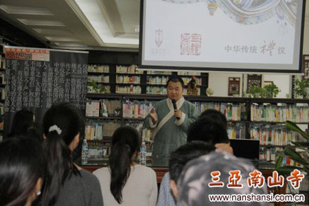 佛教在线深圳讯 “读若品茗 静自心远”,2013年11月24日下午,深圳罗湖区图书馆弘法寺分馆举行了第九期静心读书会。此次主题为“礼不远人:中华传统礼仪之美”,邀请深圳有方斋书院执行院长,深圳市儒家文化研究会副秘书长大梦作为主讲嘉宾,得到了在场人士的热烈欢迎。